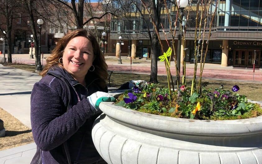 Don’t be surprised if you see Gretchen Cudak stop on a stroll through downtown St. Paul’s Rice Park to pull a weed or pick some trash out of a flowerbed.